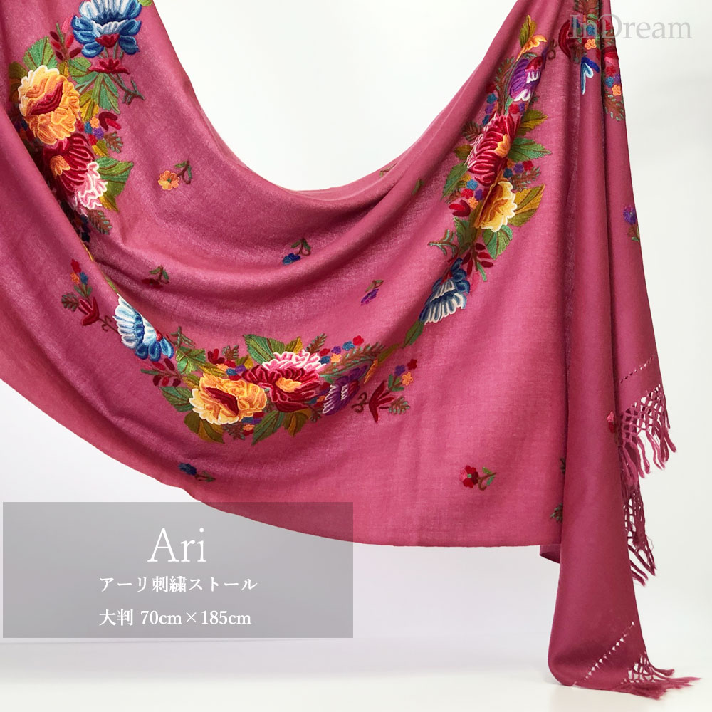 InDream アーリ刺繍ストール ピンク 大判 クリスマス ギフト おしゃれ 誕生日 プレゼント 着物ショール レディース 5...