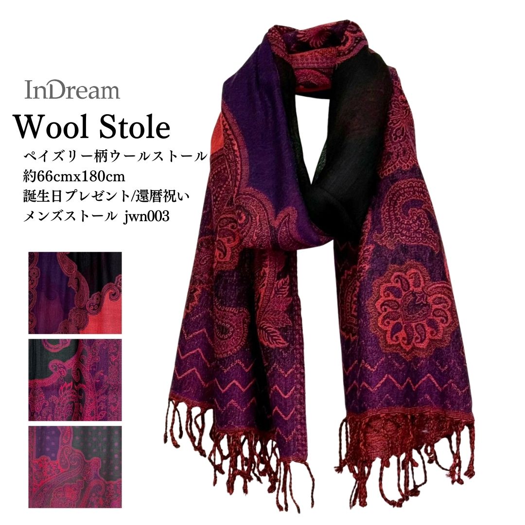 InDream 還暦祝い ペイズリー柄 ウール ストール 赤 一点もの 大判 [70cmx180cm]誕生日 プレゼント クリスマ...