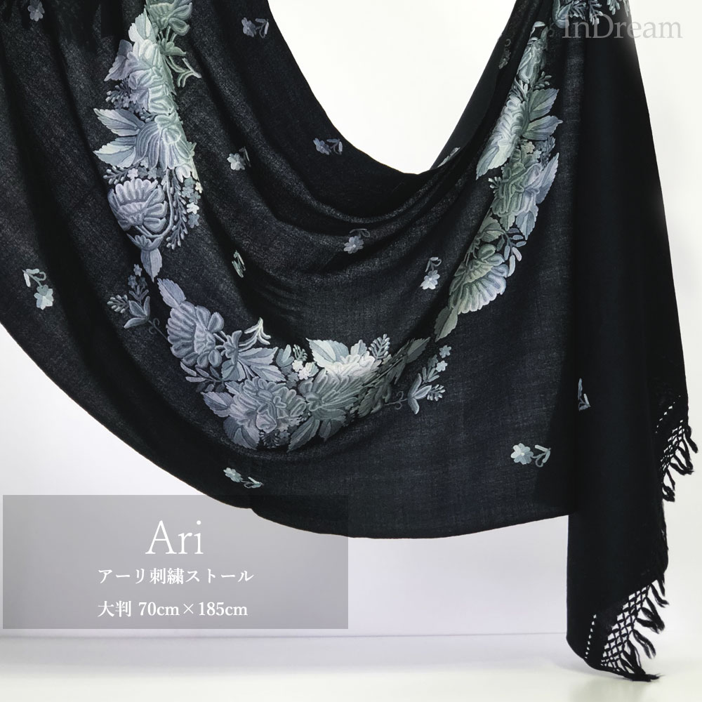 InDream アーリ刺繍ストール 黒 グレー 大判 クリスマス ギフト おしゃれ 誕生日 プレゼント 着物ショール レディース ...