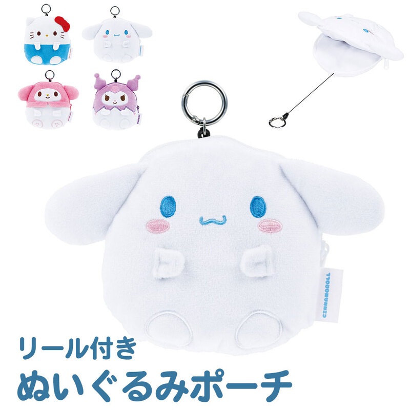 ポーチ リール付き ぬいぐるみ 小物入れ 収納 カラビナ付き クッション仕様 サンリオ ハローキティ マイメロディ クロミ シナモ...