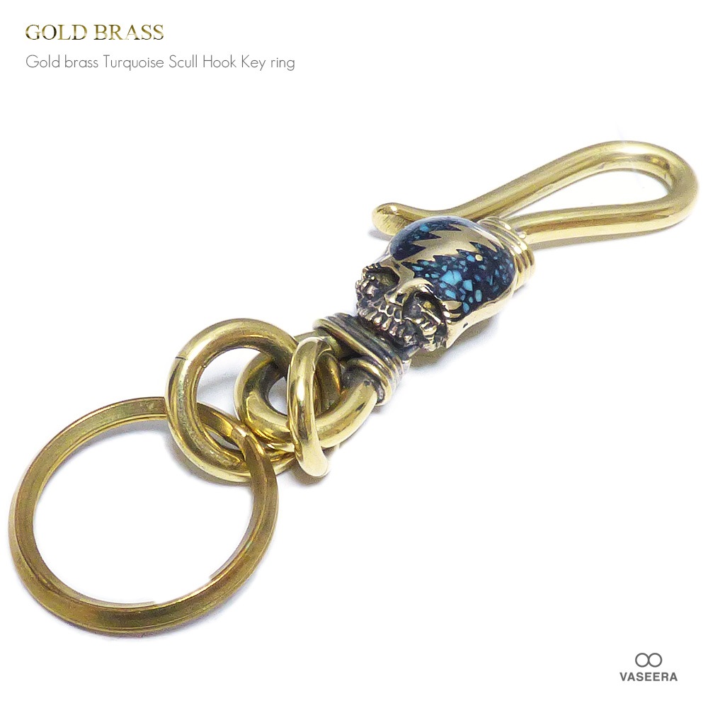 ゴールドブラス(真鍮) 六角ターコイズ ベルトフック 30mm二重カン付きキーホルダー 【キーリング 】