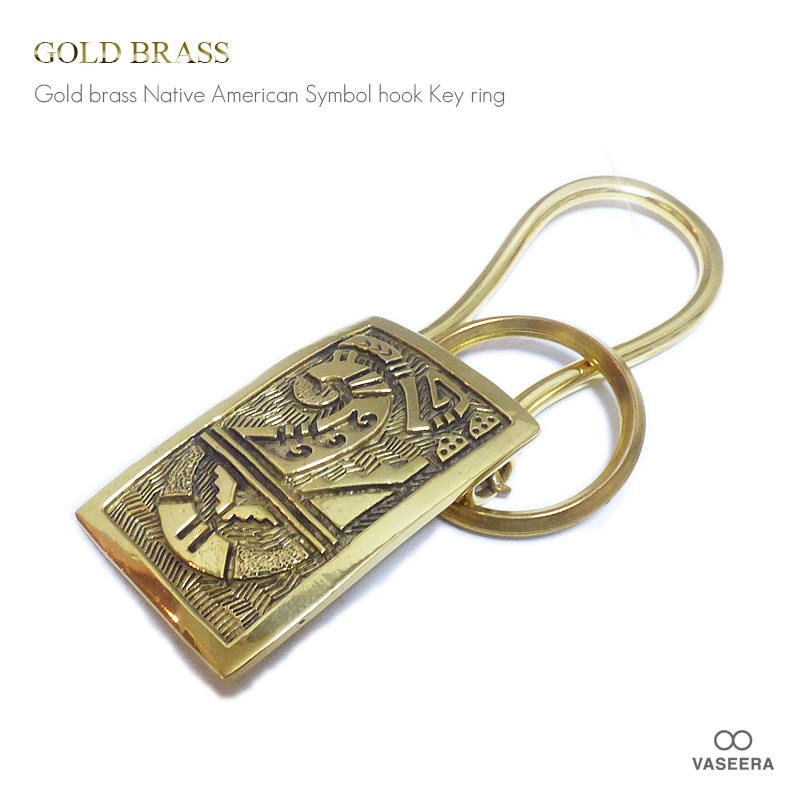 ゴールドブラス(真鍮) ネイティブアメリカン系シンボル プレート ロック式フック 30mm二重カン付きキーホルダー 【キーリン...