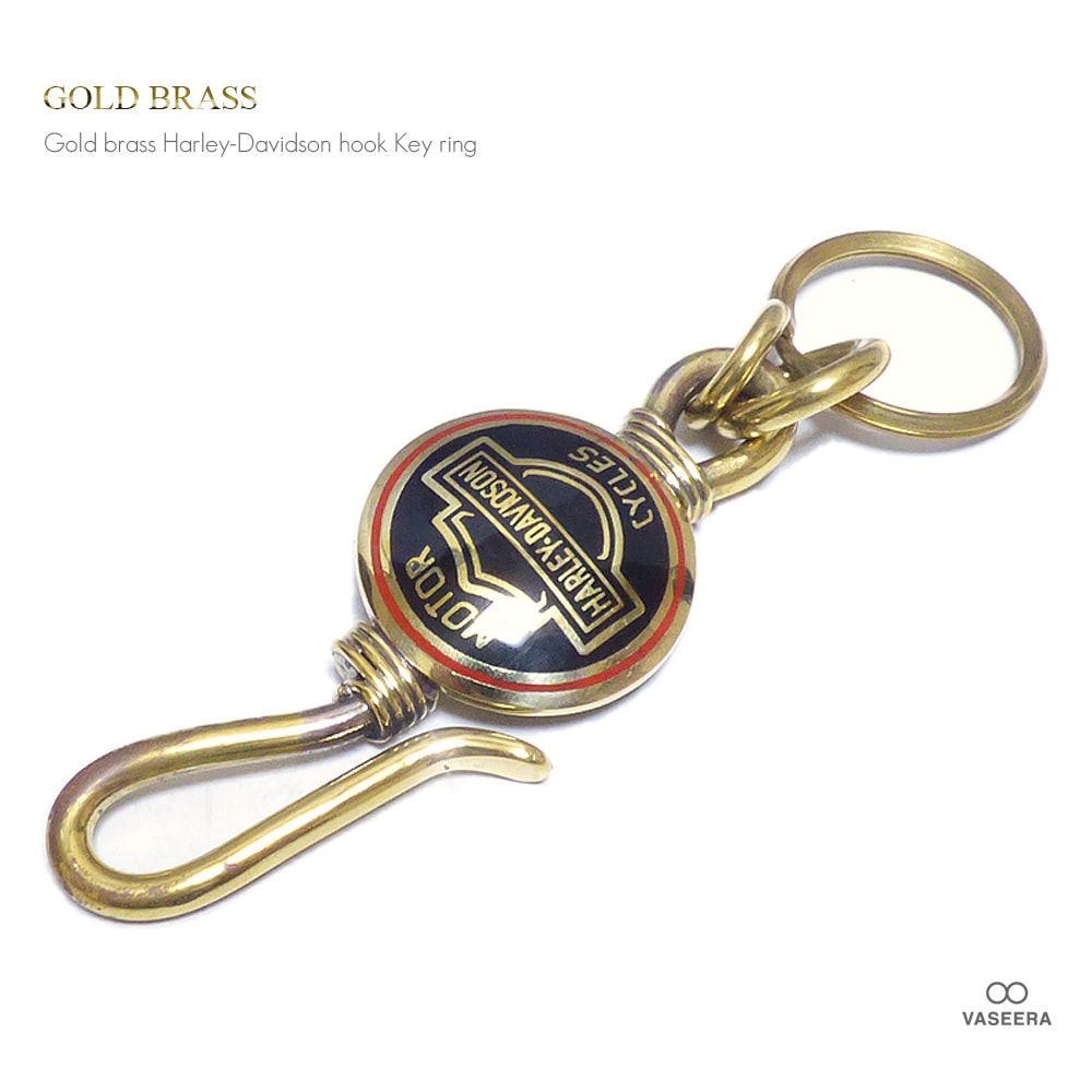 ゴールドブラス(真鍮) 95mm ”HARLEY-DAVIDSON(ハーレーダビッドソン)”デザイン フック 30mm二重カン付...