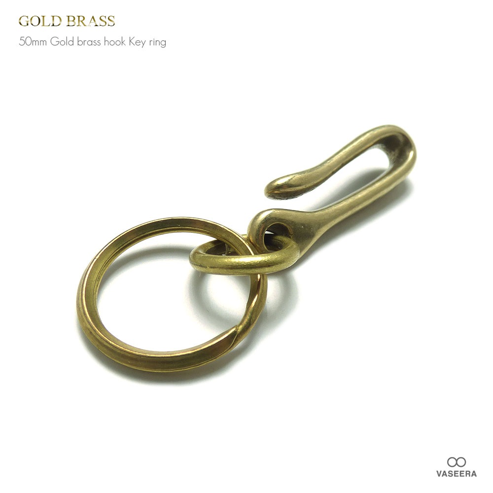 ゴールドブラス(真鍮) 50mmベルトフック 二重リング(二重カン)付きキーホルダー(Sサイズ) 【キーリング 】