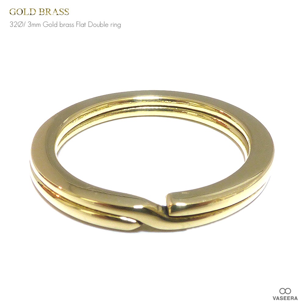 ゴールドブラス(真鍮) 鏡面仕上げ 32mm フラット/平型二重カン パーツ /ダブルリング/二重キーリング 【キーホルダー/パー...
