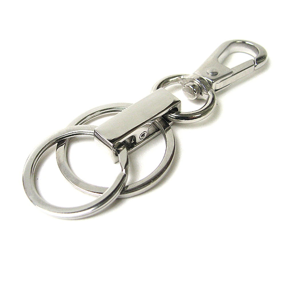 2連 流線パーツ ステンレス手磨き2重カン付き ナスカン キーホルダー /カラビナ/キーリング