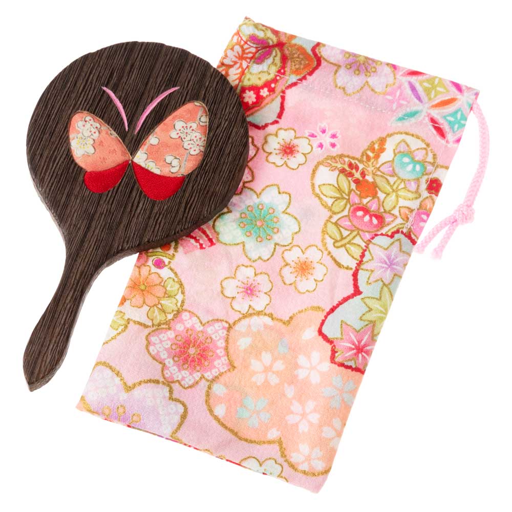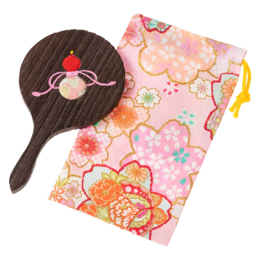 桐木目込み細工 手鏡 小001 巾着袋付き 箱長の桐工芸品 Hand mirror kimekomi-zaiku kiri Hak...