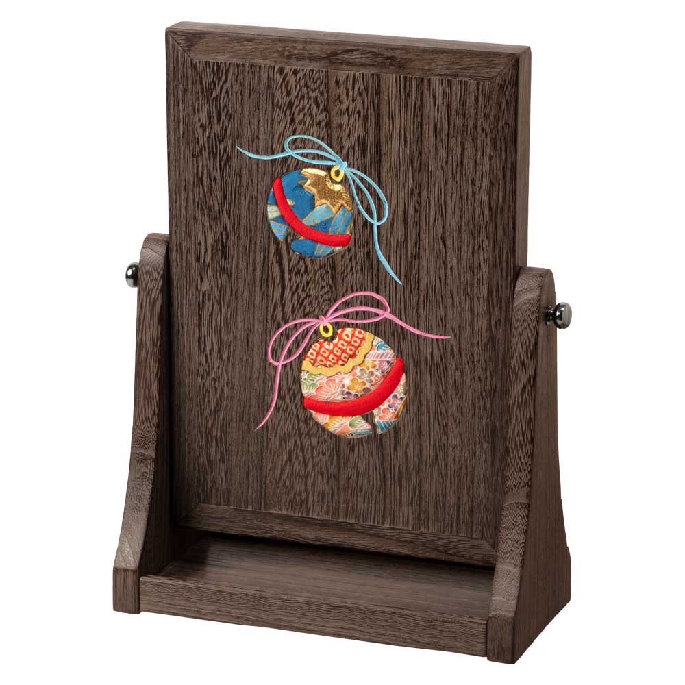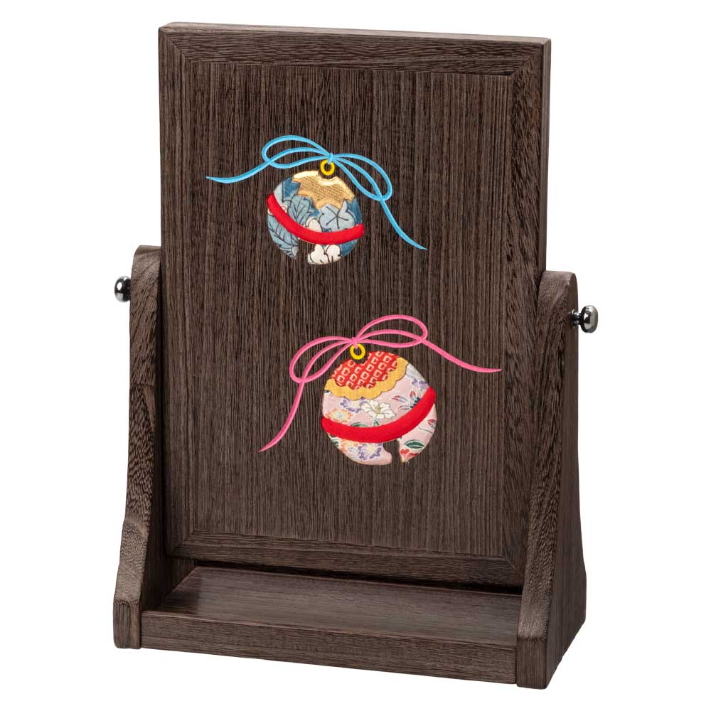 桐木目込み細工 卓上ミラー (005) 鈴 化粧鏡 縦 桐製・時代仕上 箱長の桐工芸品 日本製 東京浅草の木製品