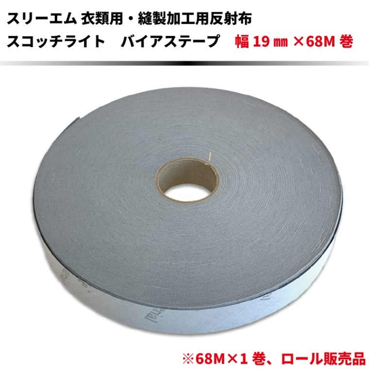 スリーエム スコッチライト反射布 バイアステープ シルバー 縫製加工用 幅19㎜×長さ68M