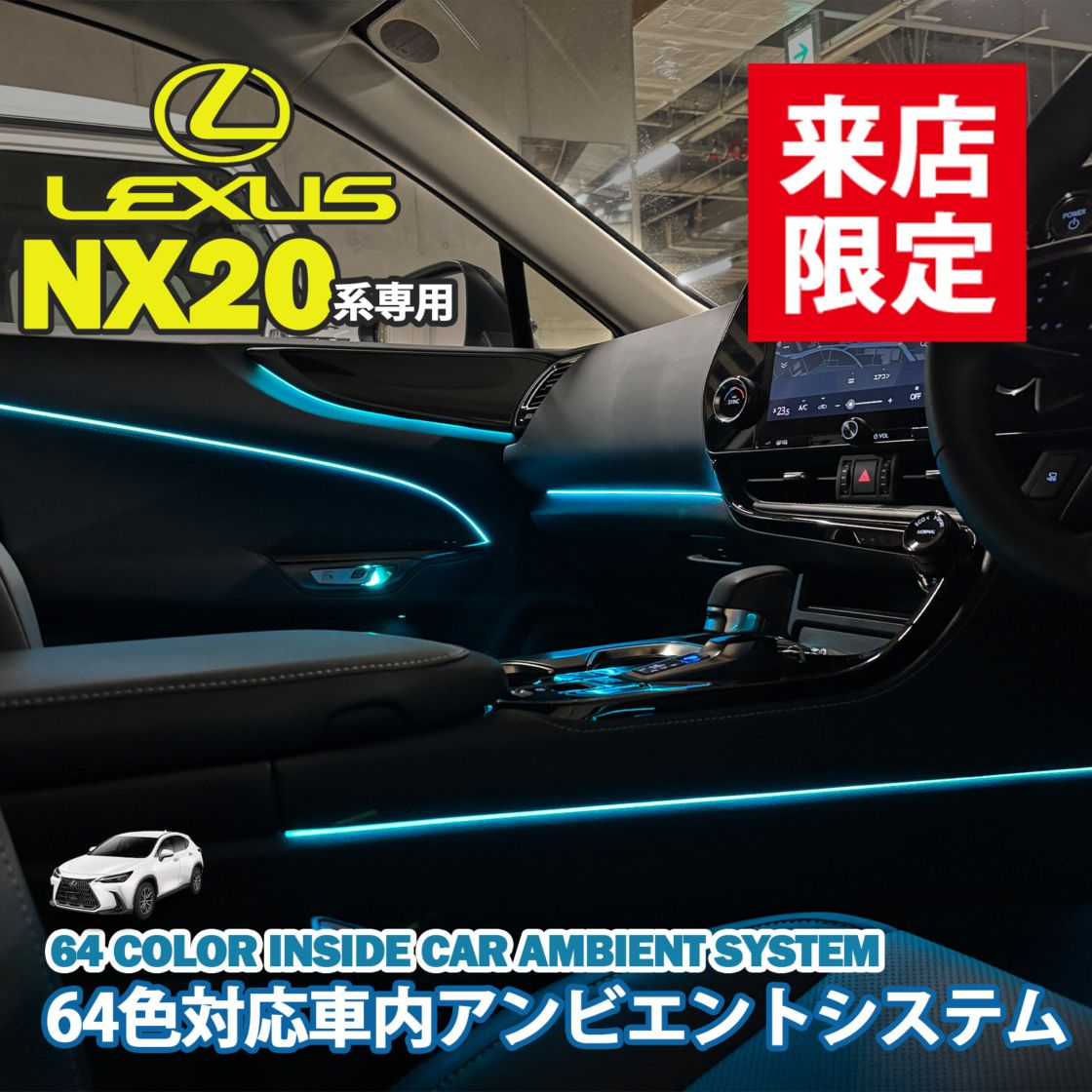 5月限定来店取付工賃込 レクサス NX20系用 64色対応車内アンビエントシステム基本セット LEXUS NX450h+ NX35...