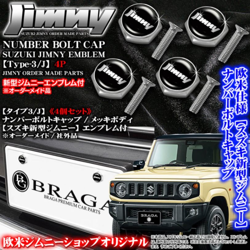 JB64Wジムニー【スズキ新型ジムニーエンブレム付/客注品】メッキボディ/ナンバーボルトキャップ《タイプ3/J》4個セット[汎用品...