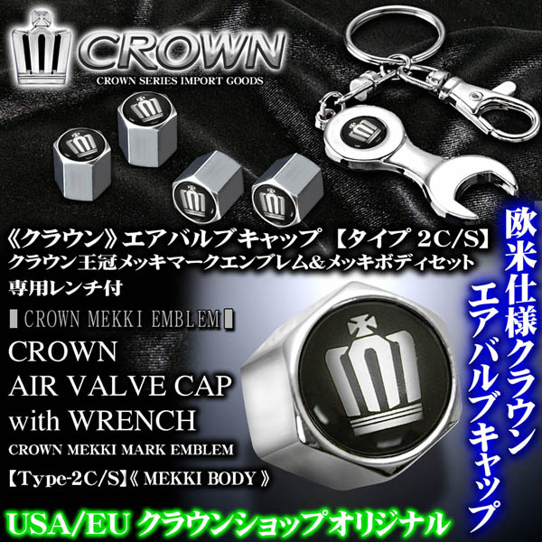 クラウン/マジェスタ【メッキ王冠マークエンブレム付】エアバルブキャップ/メッキボディ[タイプ2C/S]専用レンチ付/4個セット[汎...