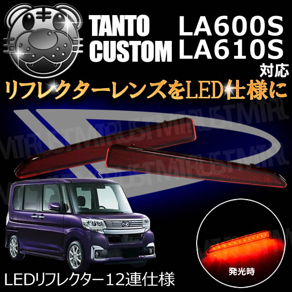 LEDリフレクター12連仕様 タントカスタム LA600S LA610S系 対応 レッド発光 【リフレクター ブレーキランプ ブレ...