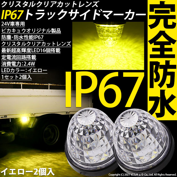 【即納】24Vトラック対応 LEDサイドマーカー イエロー 防塵防水性能IP67 クリアレンズ 大光量SMD16個 2個セット