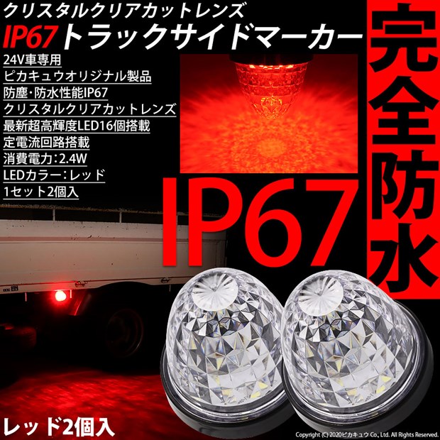 【即納】24Vトラック対応 LEDサイドマーカー レッド 防塵防水性能IP67 クリアレンズ 大光量SMD16個 2個セット
