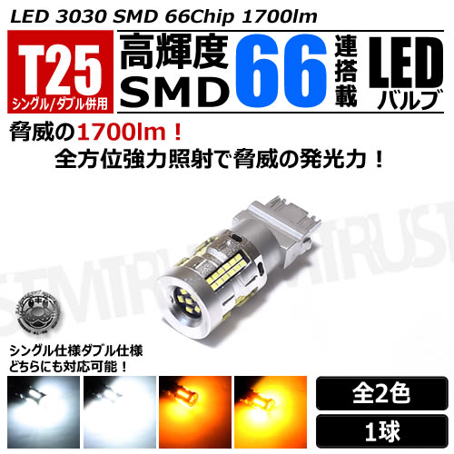 LED T25 シングル ダブル 併用 高輝度 SMD 66連 LED バルブ ホワイト オレンジ 1個価格 3030チップ 12...