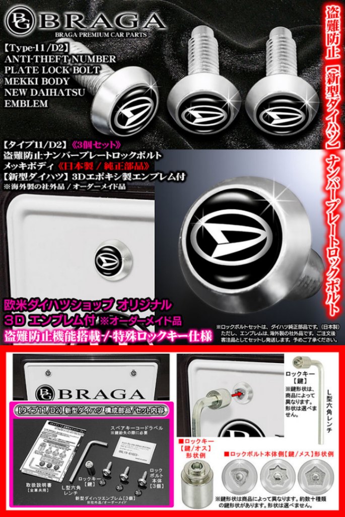 [タイプ11/D2]3個入 新型ダイハツ 3Dエンブレム付 海外社外品 客注品 盗難防止 ナンバープレート ロックボルト 純正品 ...