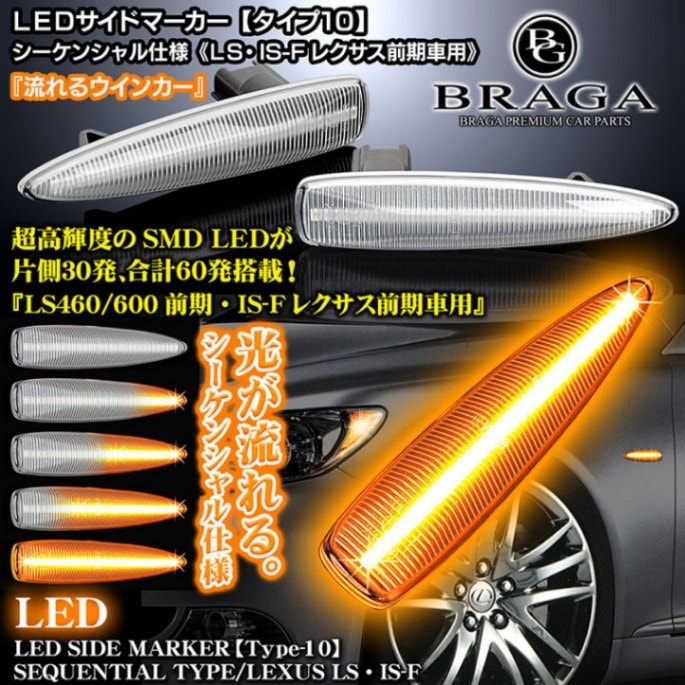 レクサスIS-F前期【タイプ10】流れるLEDサイドマーカー/シーケンシャル ウインカー/クリアレンズ/超高輝度SMD LED60...