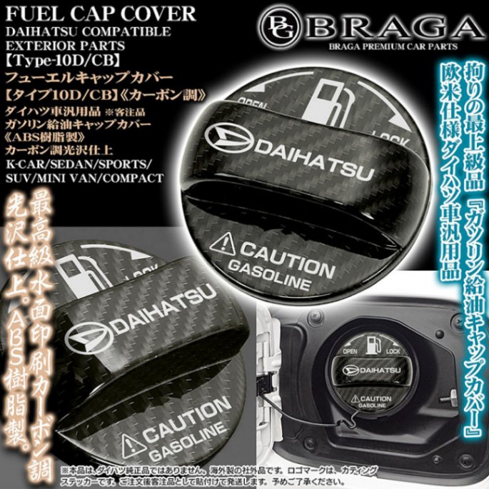 [タイプ10D/CB]ダイハツ車汎用品ロゴマークステッカー付 給油 フューエル キャップ カバー[ABS樹脂製/カーボン調/光沢仕...