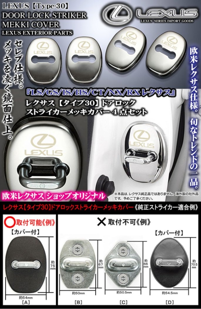 限定品/RC/LC/HS/CT/レクサス ドアロック ストライカー メッキカバー4点セット【ゴールド/レクサス ロゴマーク付/客注...
