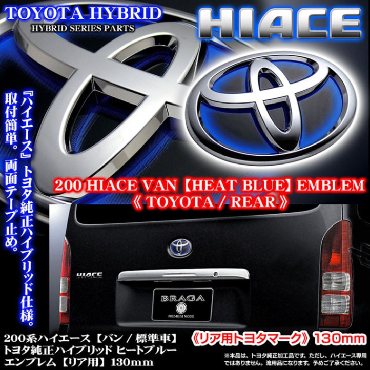 200系ハイエース/バン標準車【ヒートブルー/リア1点/130mm】トヨタTマーク・トヨタ純正流用ハイブリッド エンブレム/取付簡...
