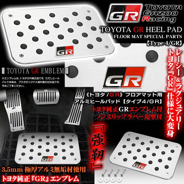 《トヨタ純正GRエンブレム付》プレミアム/ヒールパッド&プレートセット【タイプ4/GR】アルミ製フロアマット用滑り止めラバー付/ブ...
