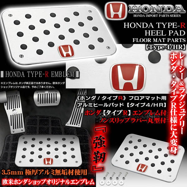《ホンダ/タイプRエンブレム付》プレミアム/ヒールパッド&プレートセット【タイプ4/HR】アルミ製フロアマット用/滑り止めラバー付...