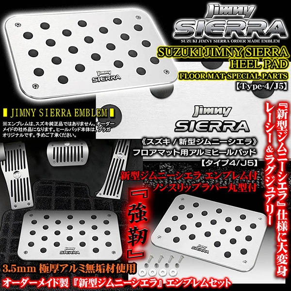 《スズキ新型ジムニーシエラ エンブレム付》ヒールパッド&プレートセット【タイプ4/J5】アルミ製フロアマット用/滑り止めラバー付/...