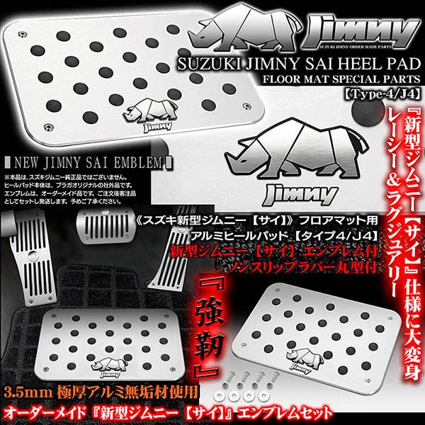 《スズキ新型ジムニー[サイ]エンブレム》ヒールパッド&プレートセット【タイプ4/J4】アルミ製/フロアマット用/滑り止めラバー/客...
