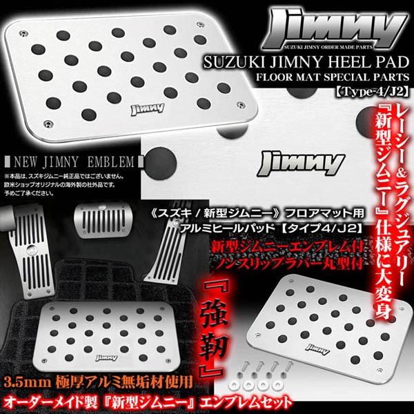 《スズキ新型ジムニーエンブレム付》ヒールパッド&プレートセット【タイプ4/J2】アルミ製フロアマット用/滑り止めラバー付/客注品/...