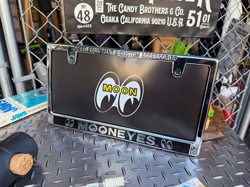 ムーンアイズ クローム ライセンスプレート フレーム (Raised MOONEYES ロゴ) 単品
