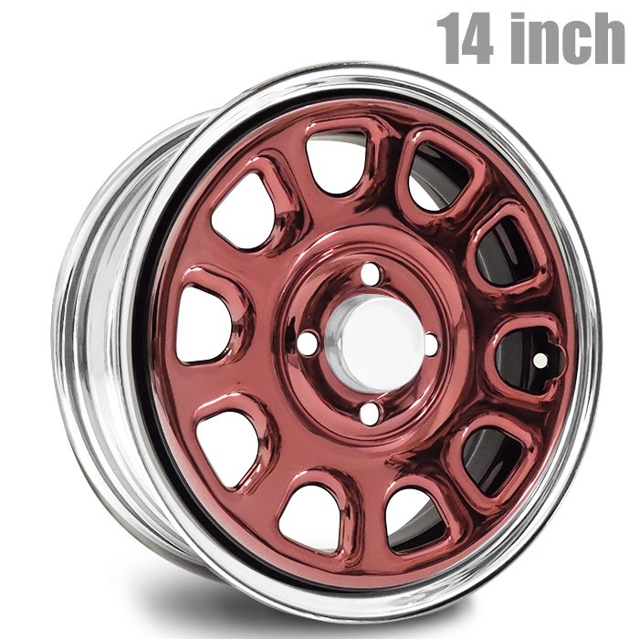 14インチ デイトナホイール 4本セット 【14×5.0J+42 4H PCD100 CB68】 キャンディーレッド クロームリム...