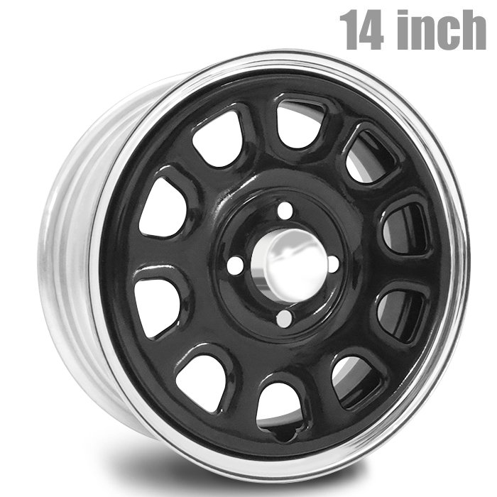 14インチ デイトナホイール 4本セット 【14×5.0J+42 4H PCD100 CB68】 ブラック クロームリム メッキリ...