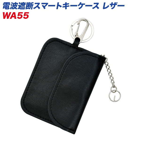 セイワ 電波遮断スマートキーケース レザー リレーアタック対策 防犯対策用 落下防止チェーン付 コンパクトサイズ WA55