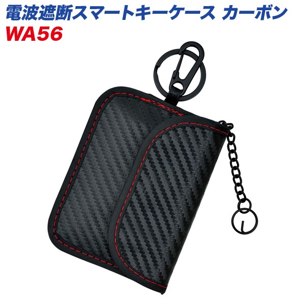 セイワ 電波遮断スマートキーケース カーボン リレーアタック対策 防犯対策用 落下防止チェーン付 コンパクトサイズ WA56