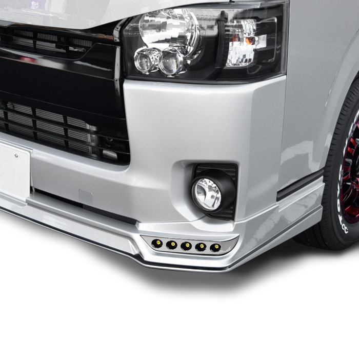 HELIOS 200系ハイエース 9型 標準 LEDフロントリップスポイラー 塗装品 089 + 202 プラチナホワイトパールマ...