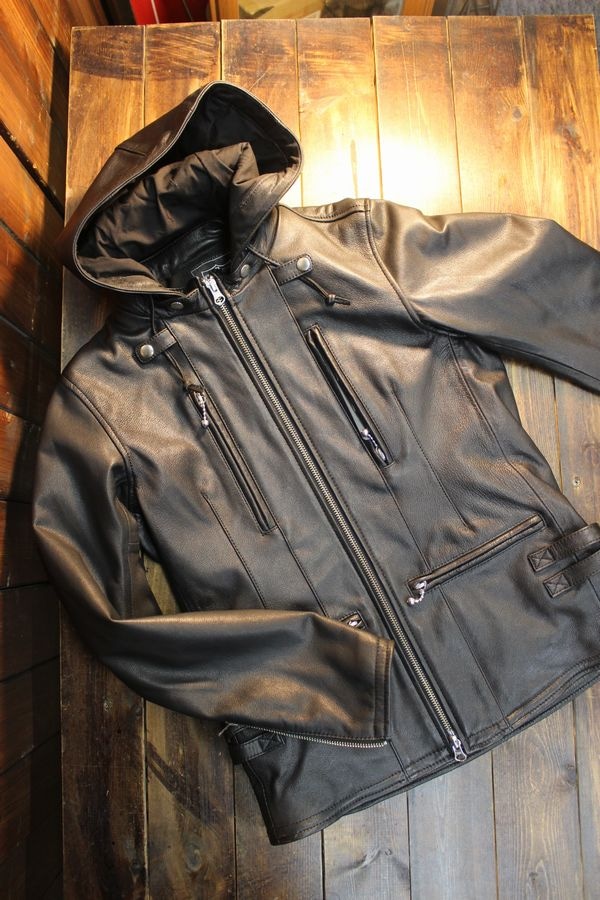 KADOYA (カドヤ) VERMILLION レザーハーフコート バーミリオン レザージャケット フード取り外しOK
