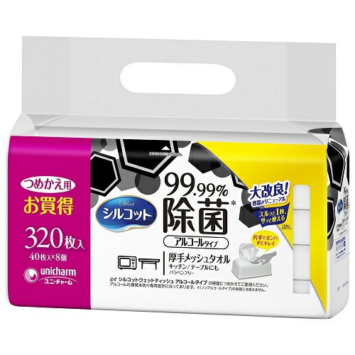 シルコット ウェットティッシュ 除菌 アルコールタイプ 99.99 除菌 詰替 320枚(40枚×8) 送料無料