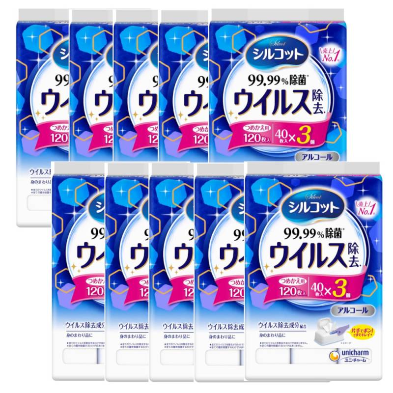 シルコット ウイルス除去 詰替 120枚(40枚×3個) ×10【10個セット】送料無料 アルコールタオル ウェットティッシュ ア...