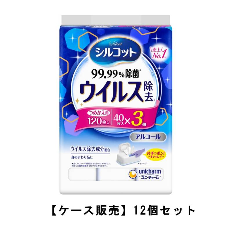 シルコット ウイルス除去 詰替 120枚(40枚×3個) ×12【12個セット】ケース販売 送料無料 アルコールタオル ウェットテ...