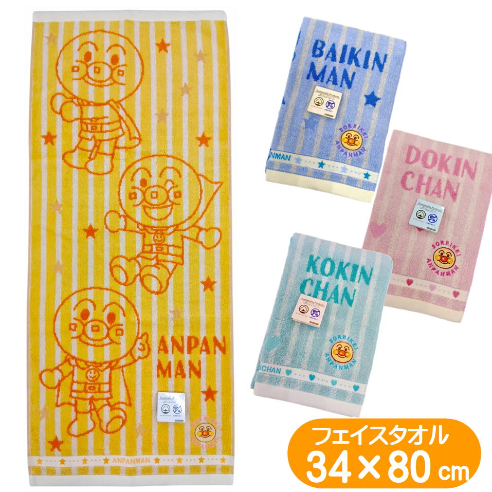 アンパンマン フェイスタオル ジャガード アニメ 絵本 キャラクター ロングタオル バンダイ くすばしタオル ばいきんまん ドキン...