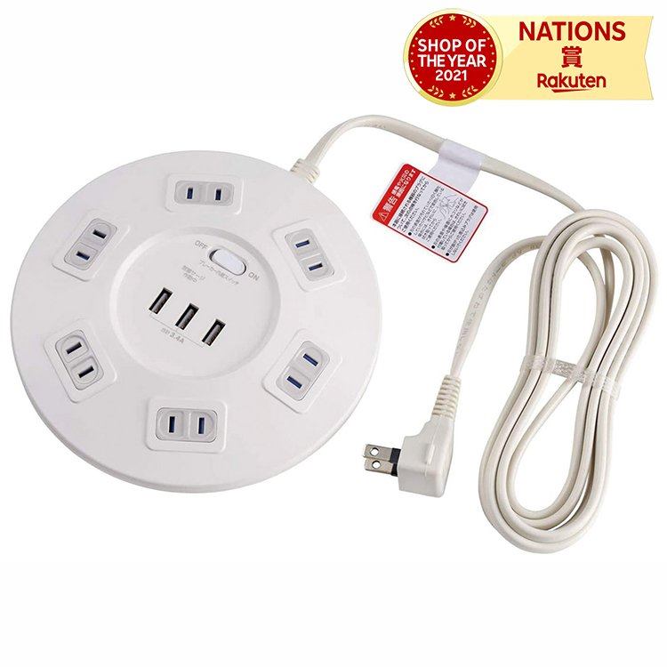 耐雷丸型集中スイッチ付タップ 電源タップ 丸型 集中スイッチ付タップ 延長コード 延長ケーブル コンセント 差し込み口 増やす...
