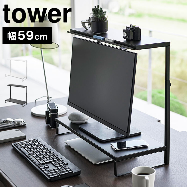 山崎実業 タワー tower モニター台 卓上 モニタースタンド パソコン台 幅59cm モニター上下ラック 2段 モニター 上 ...