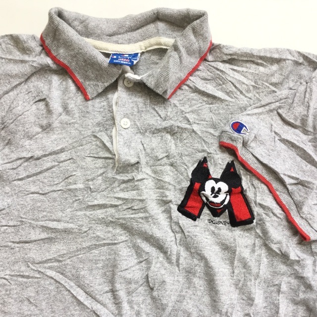 Champion チャンピオン 半袖ポロシャツ 米国製 ミッキーマウス 送料無料 L/霜降りグレー ロゴ 刺繍 アメリカ輸入 US...