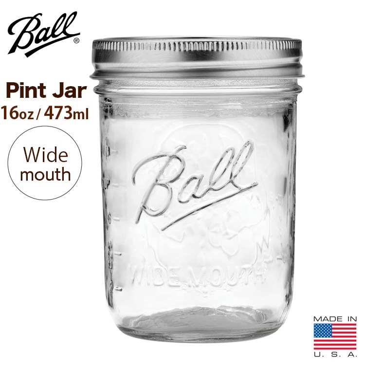 保存容器 ガラス メイソンジャー パイントジャー 16oz 473ml ワイドマウス 広口タイプ ガラス アメリカ製 キャニスター...