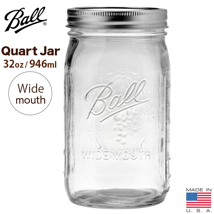 保存容器 ガラス メイソンジャー クオートジャー 32oz 946ml ワイドマウス 広口タイプ ガラス アメリカ製 キャニスター...