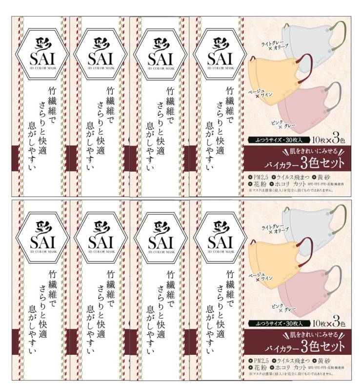 彩 saiマスク 立体 不織布 バイカラーマスク バイカラー ふつうサイズ 30枚×8【8個セット】送料無料 おしゃれ マスク