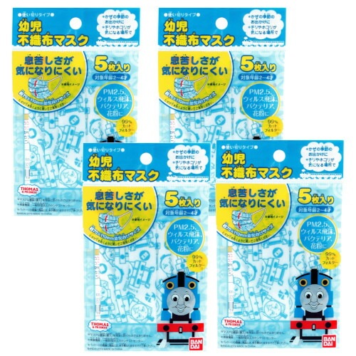 【4個セット】幼児用トーマス不織布マスク 5枚×4【送料無料】【ネコポス】【かわいい】【子供】