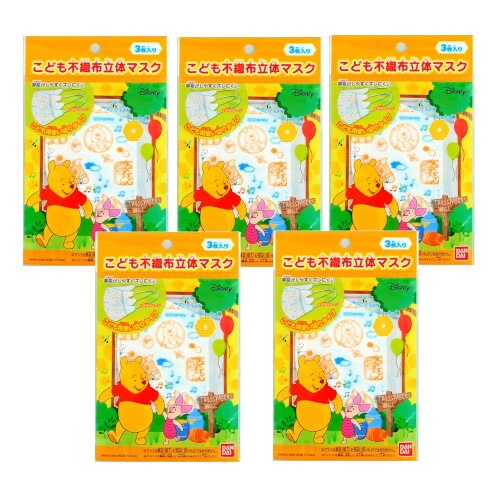 【5個セット】こども用プー立体不織布マスク 3枚×5【送料無料】【ネコポス】【かわいい】【子供】