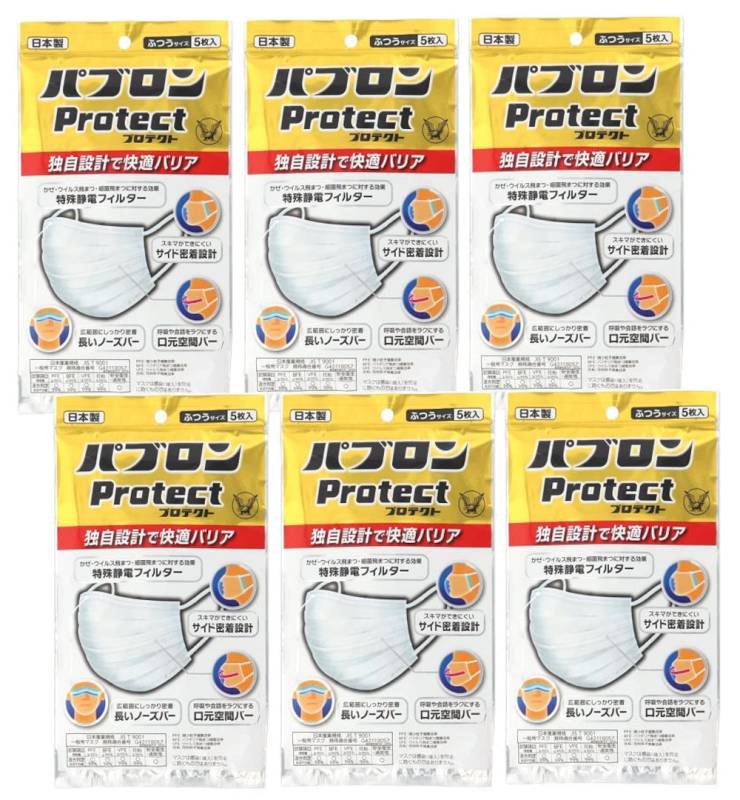 不織布マスク 大正製薬 パブロン Protect マスク ふつうサイズ 5枚入×6【6個セット】【ネコポス】 送料無料